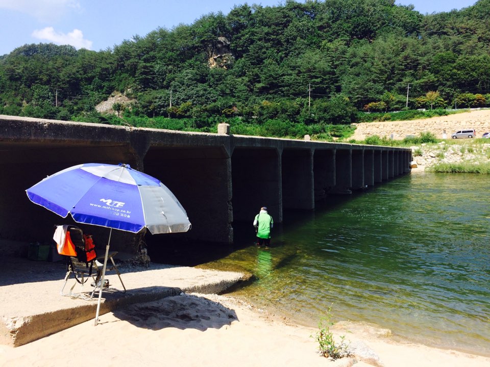 바로 자리잡고 낚시 시작! 물이 엄청맑고 더우면 바리밑으로 들어가서 잡고 추워지면 다시나오고 물이 엄첨 찹니다. |