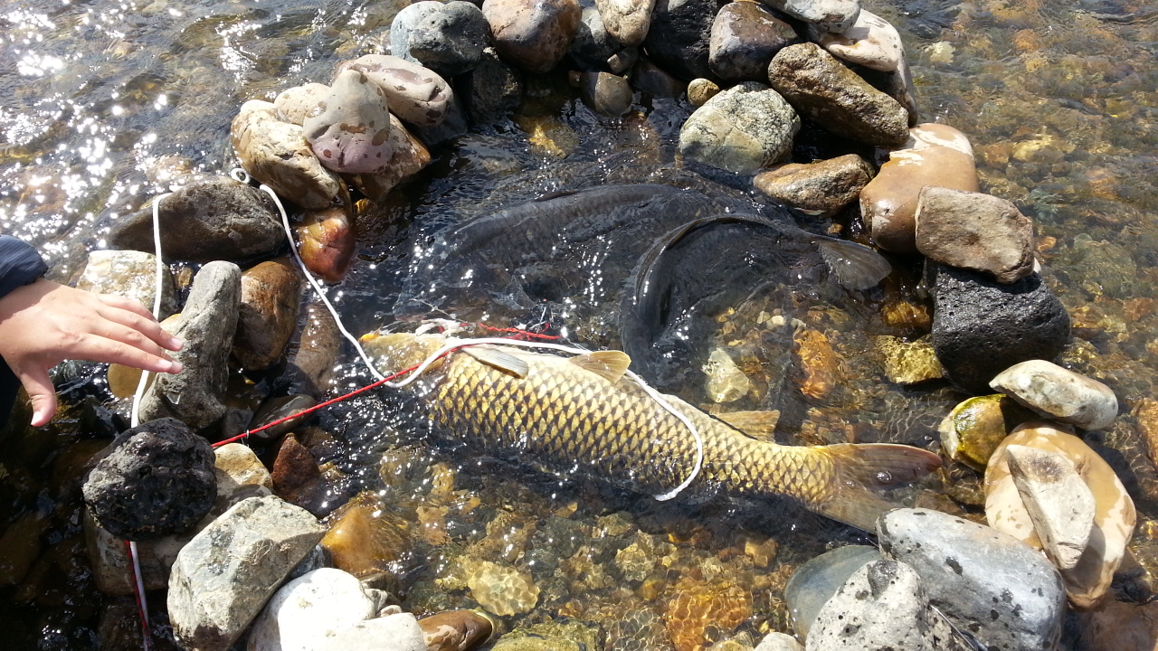 오늘의 최대어 70넘는 잉어가 여리여리한 견지대에 끌려나오는게 신기하기만 합니다. |