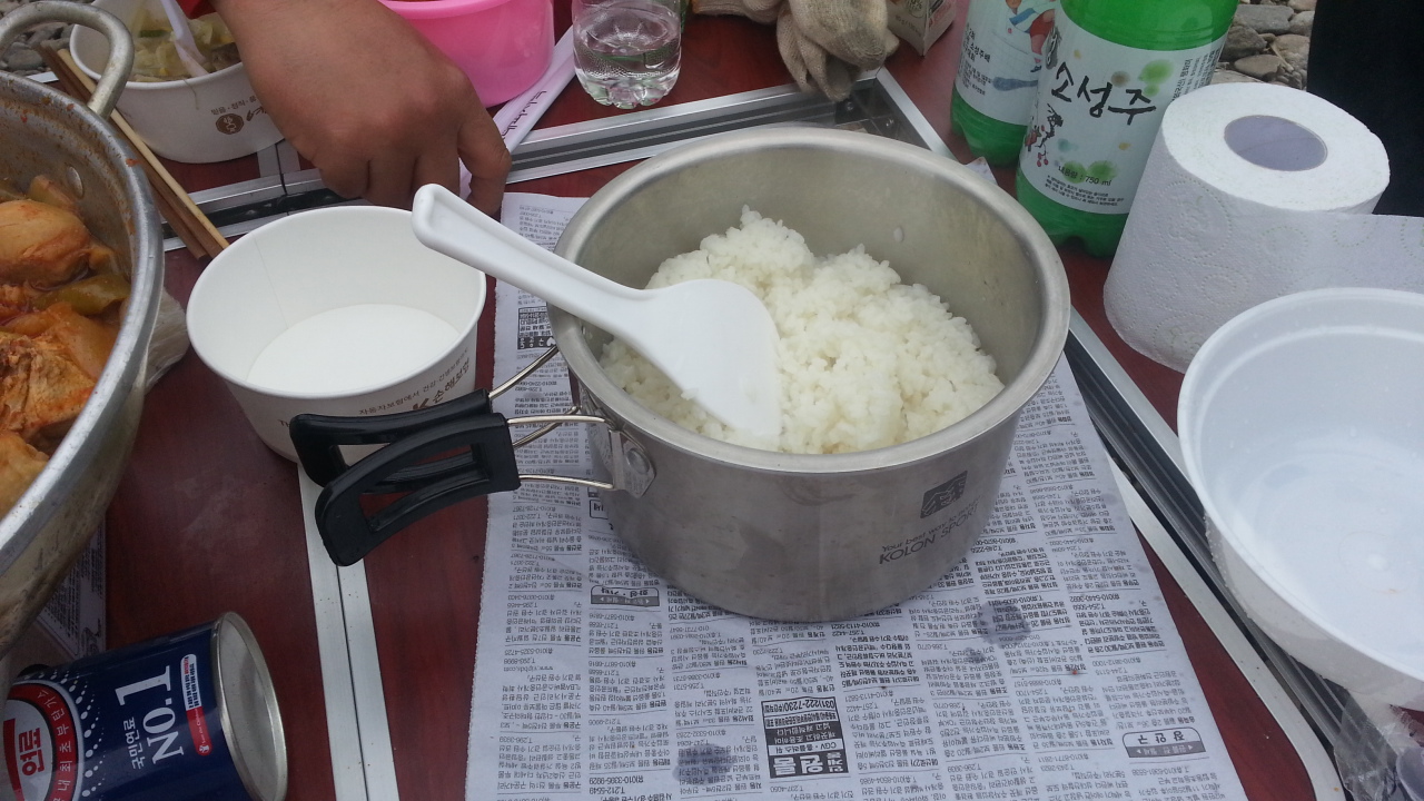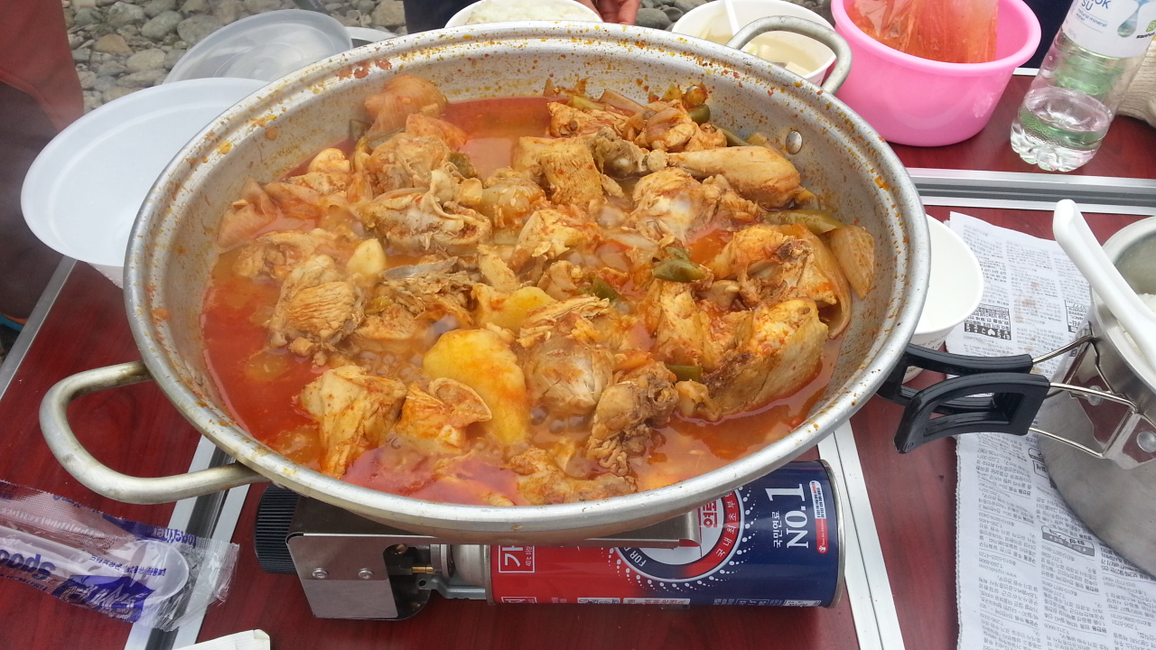 dj337선배님께서 잠도 안주무시고 준비해주신 닭도리탕에 제가 사온 황태해장국으로 해장겸 아침식사를 합니다.