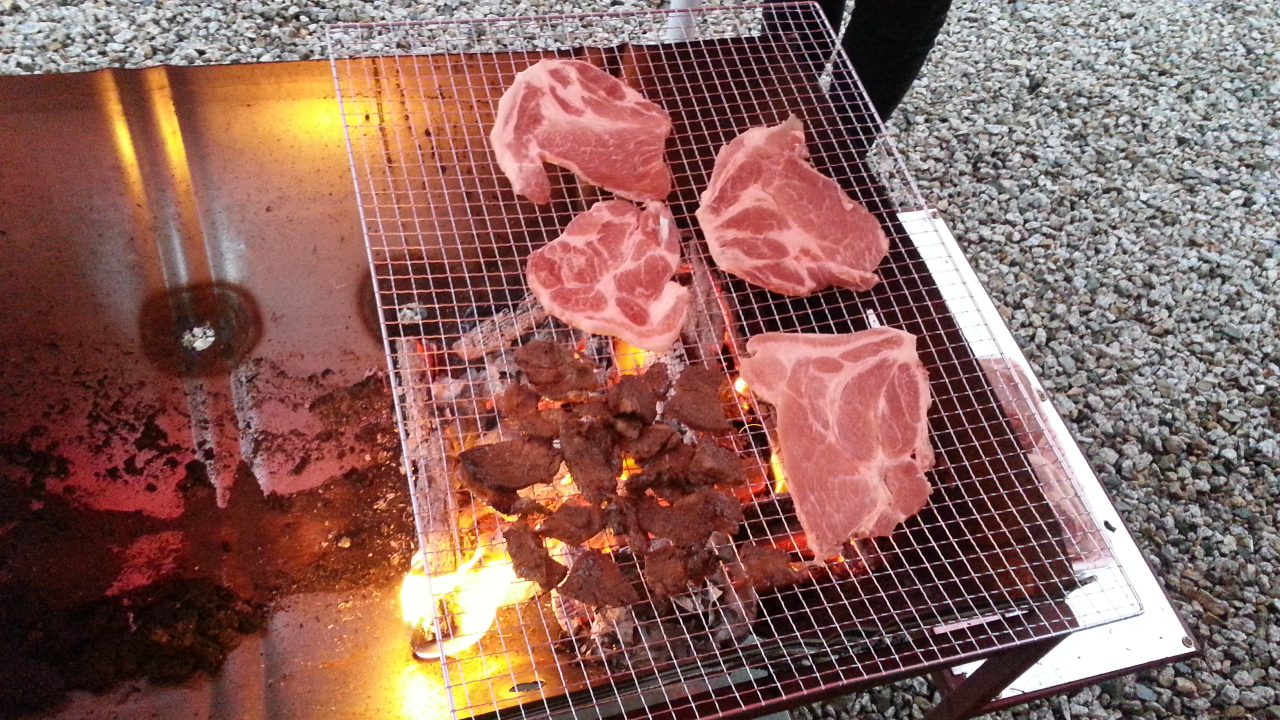 친구 와이프가 고기를 굽습니다. 원래 제가 해야 하는데 오우 고기 잘굽어~ |