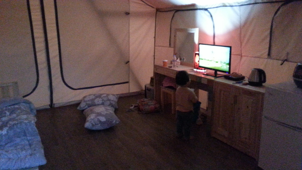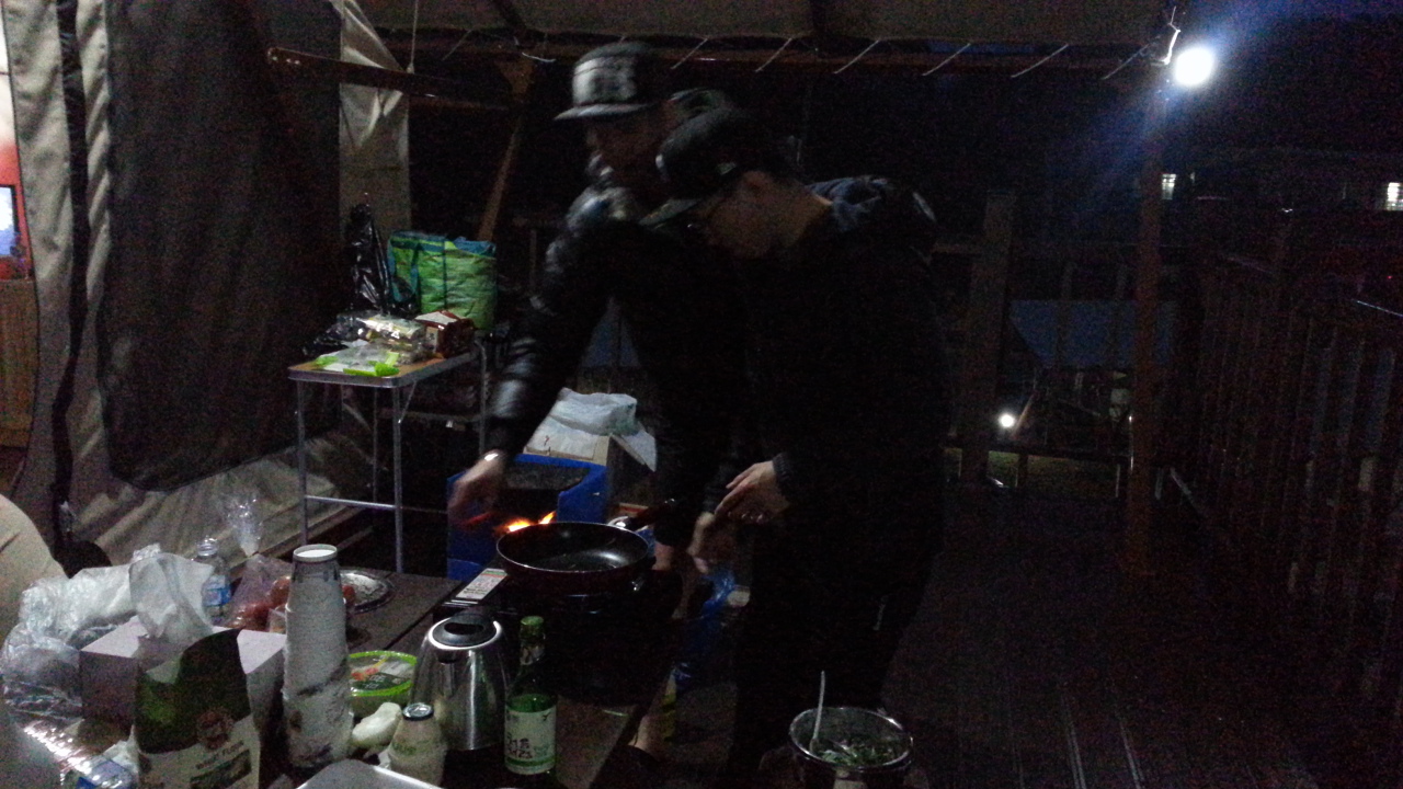안에 냉장고, 티비도 있고 와이파이도 되는데 밥상도 없고 식탁이 있는것도 아니고 전등도 없어서 차에서 랜턴 가져오고... |