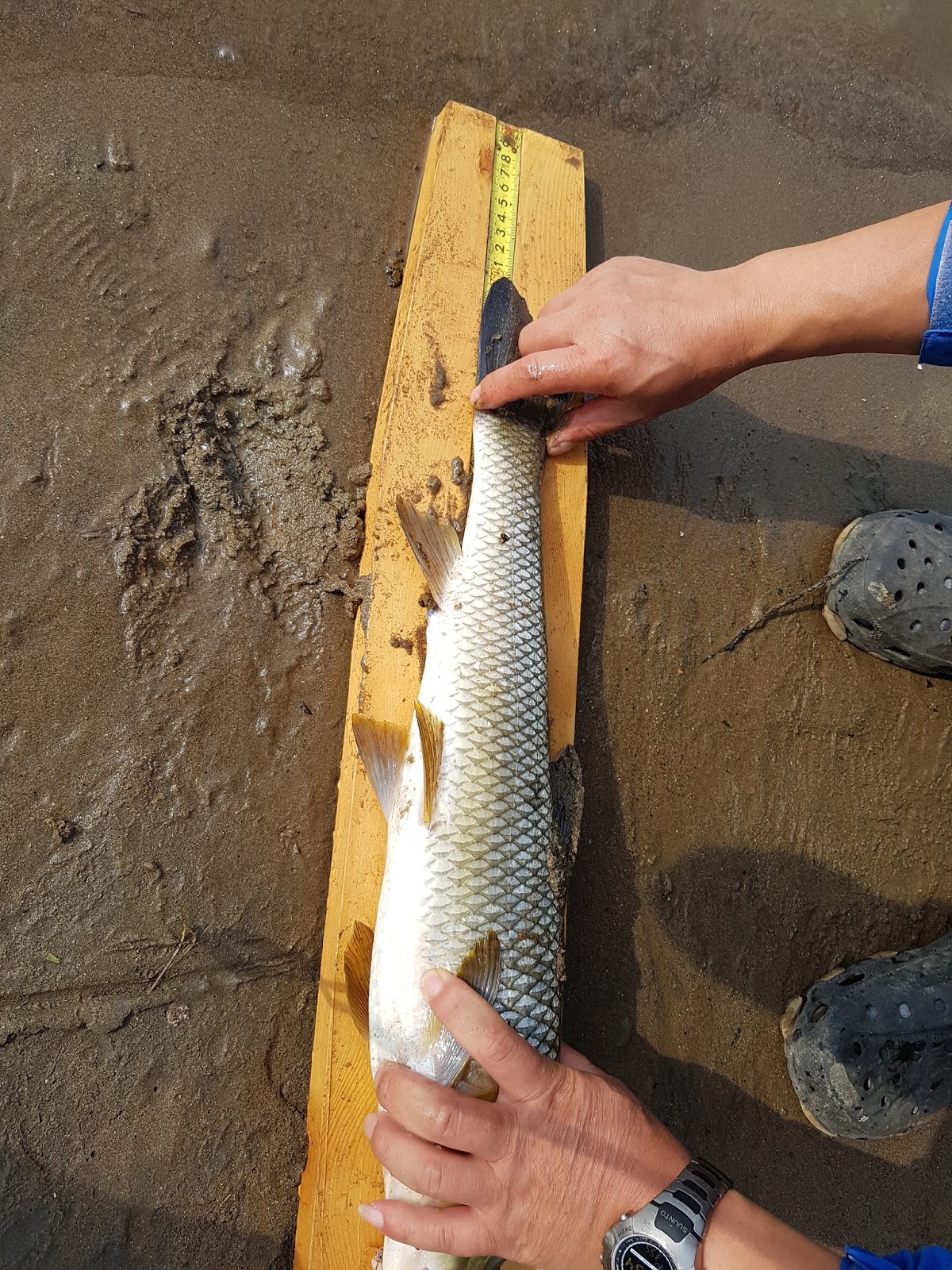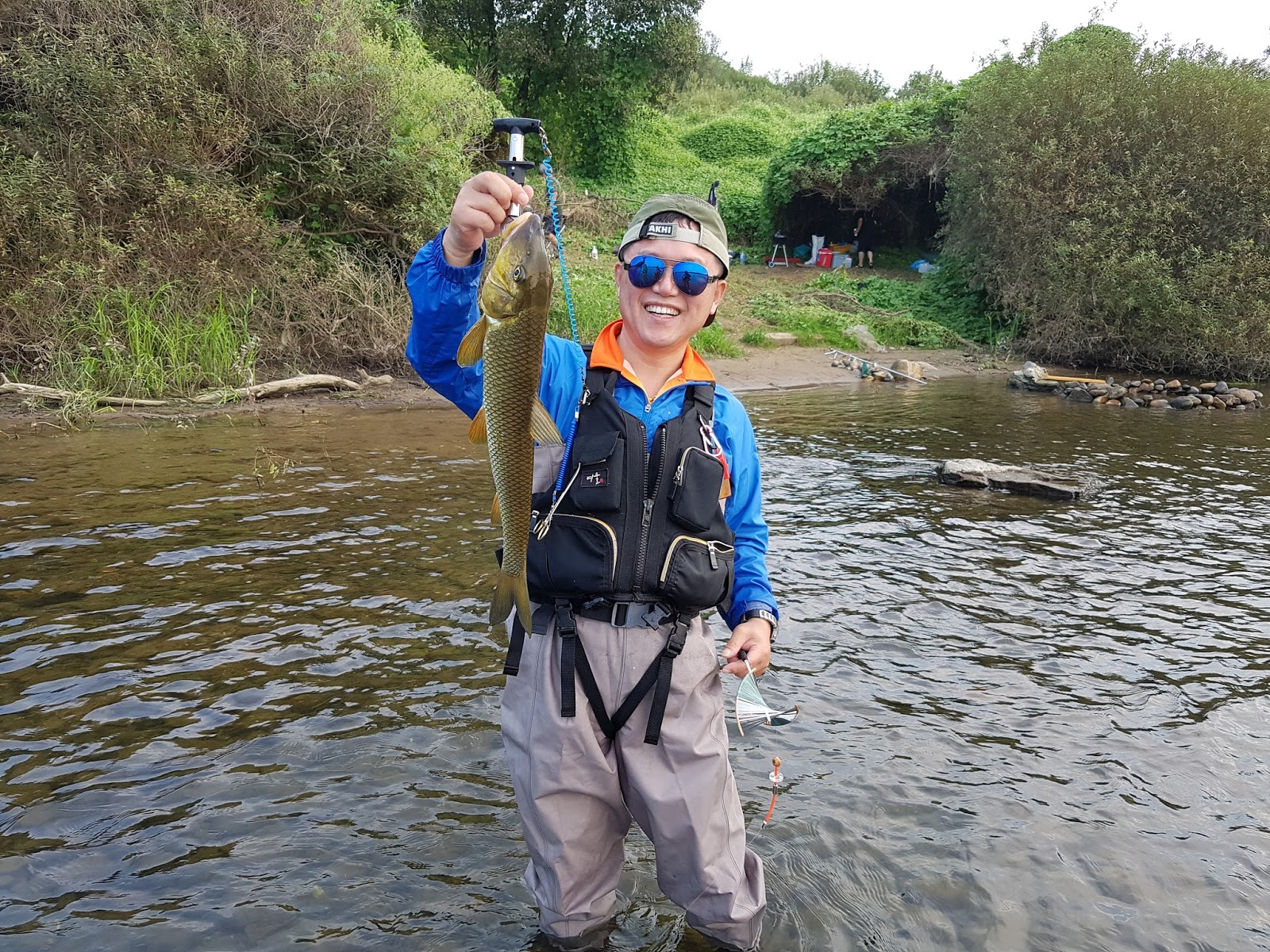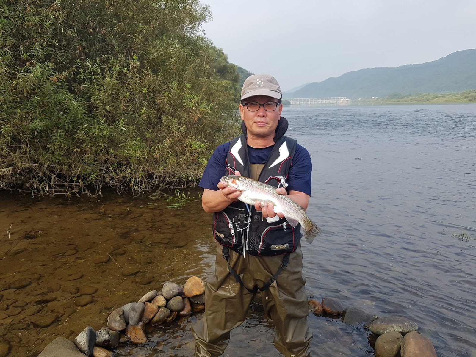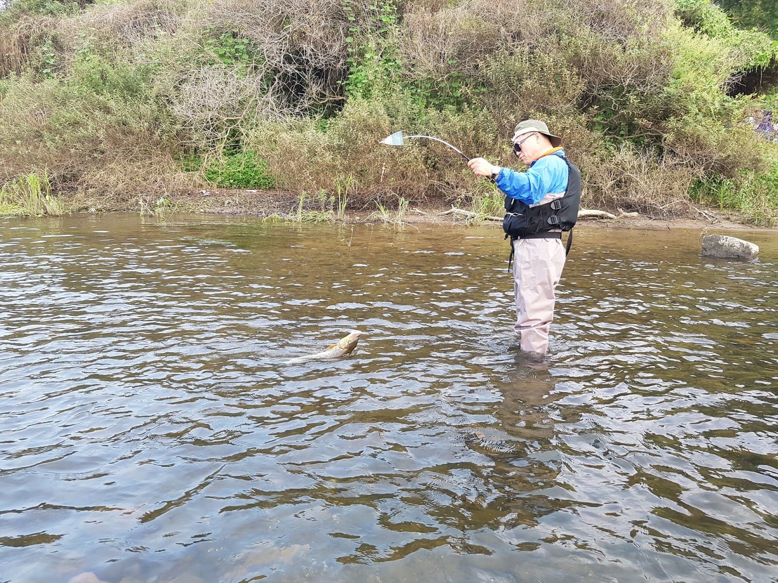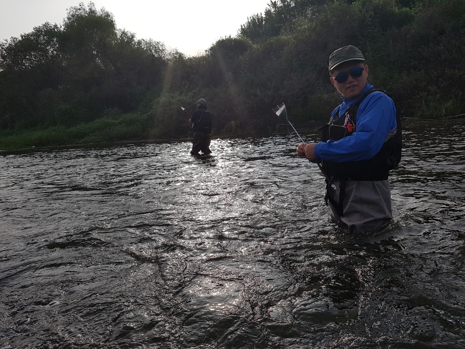 시간이 짧아 한마리걸면 승자다 라고 분위기가 잡혀진 가운데 쌍둥이아빠 선배님께서 한마리 거셨습니다. 평소에는 주로 안에서 랜딩하시는 분이 물밖까지 나오셔서 절대 않놓치려는 의지를 보입니다. |