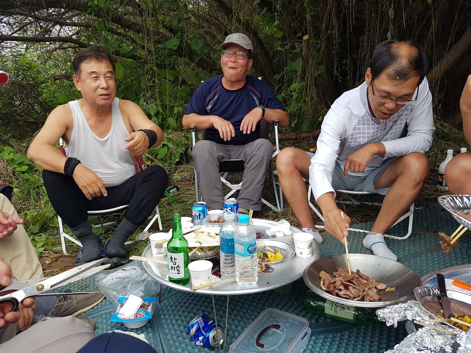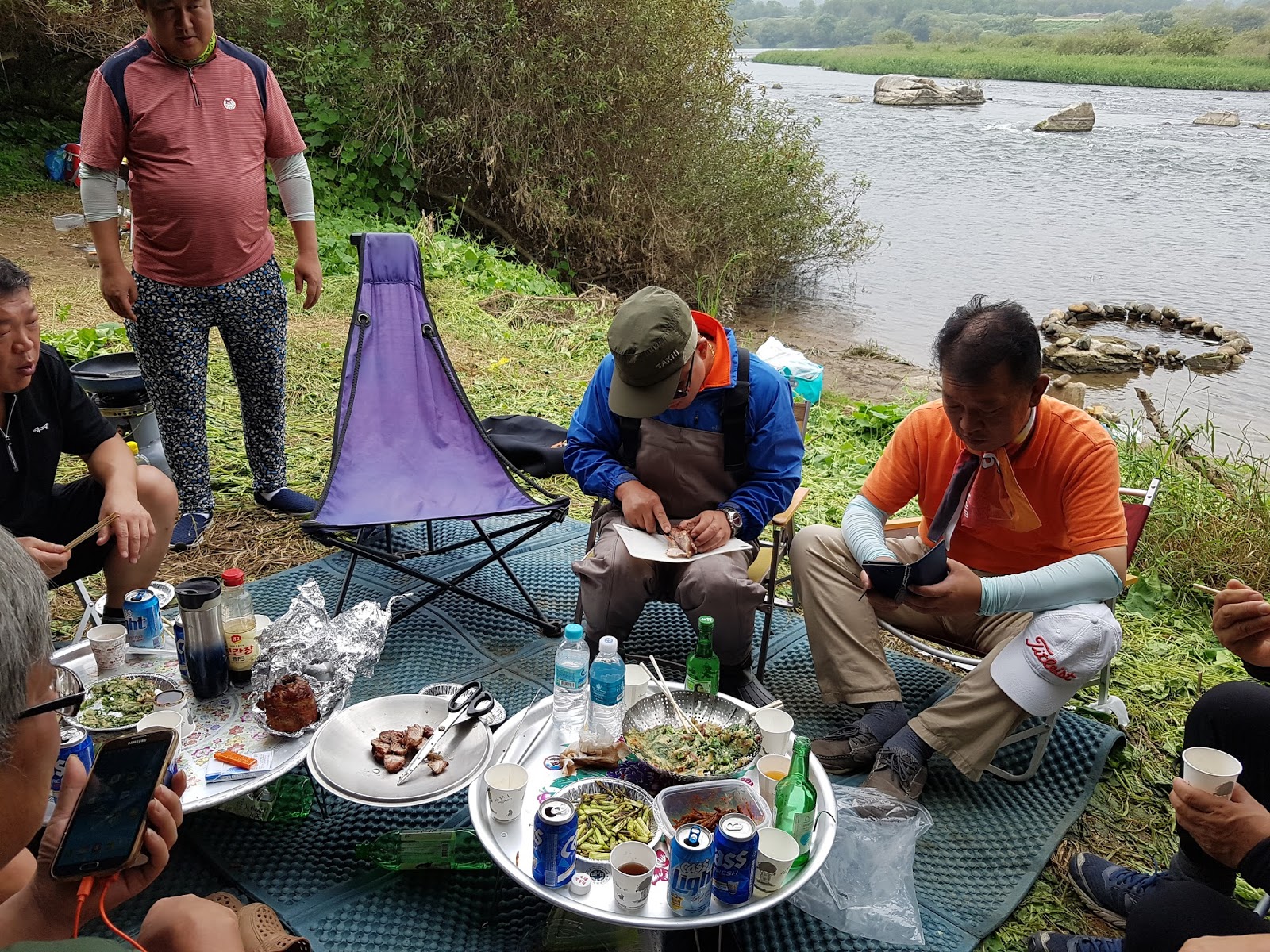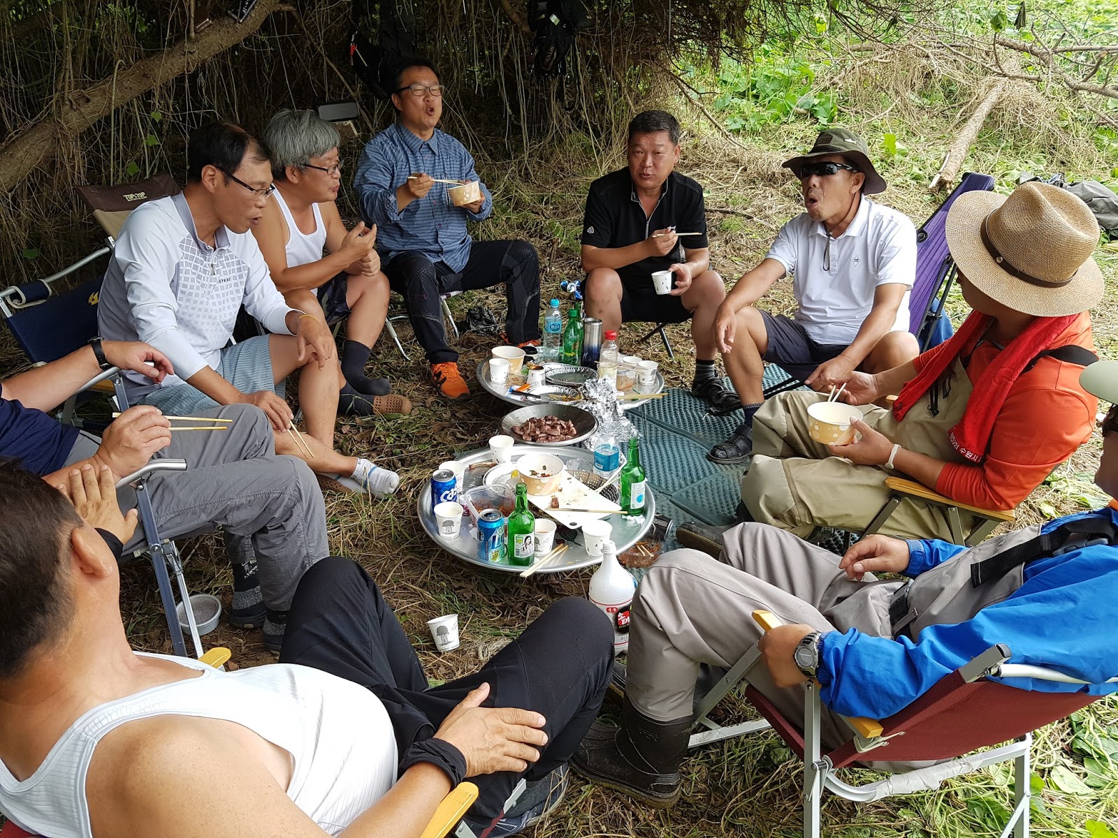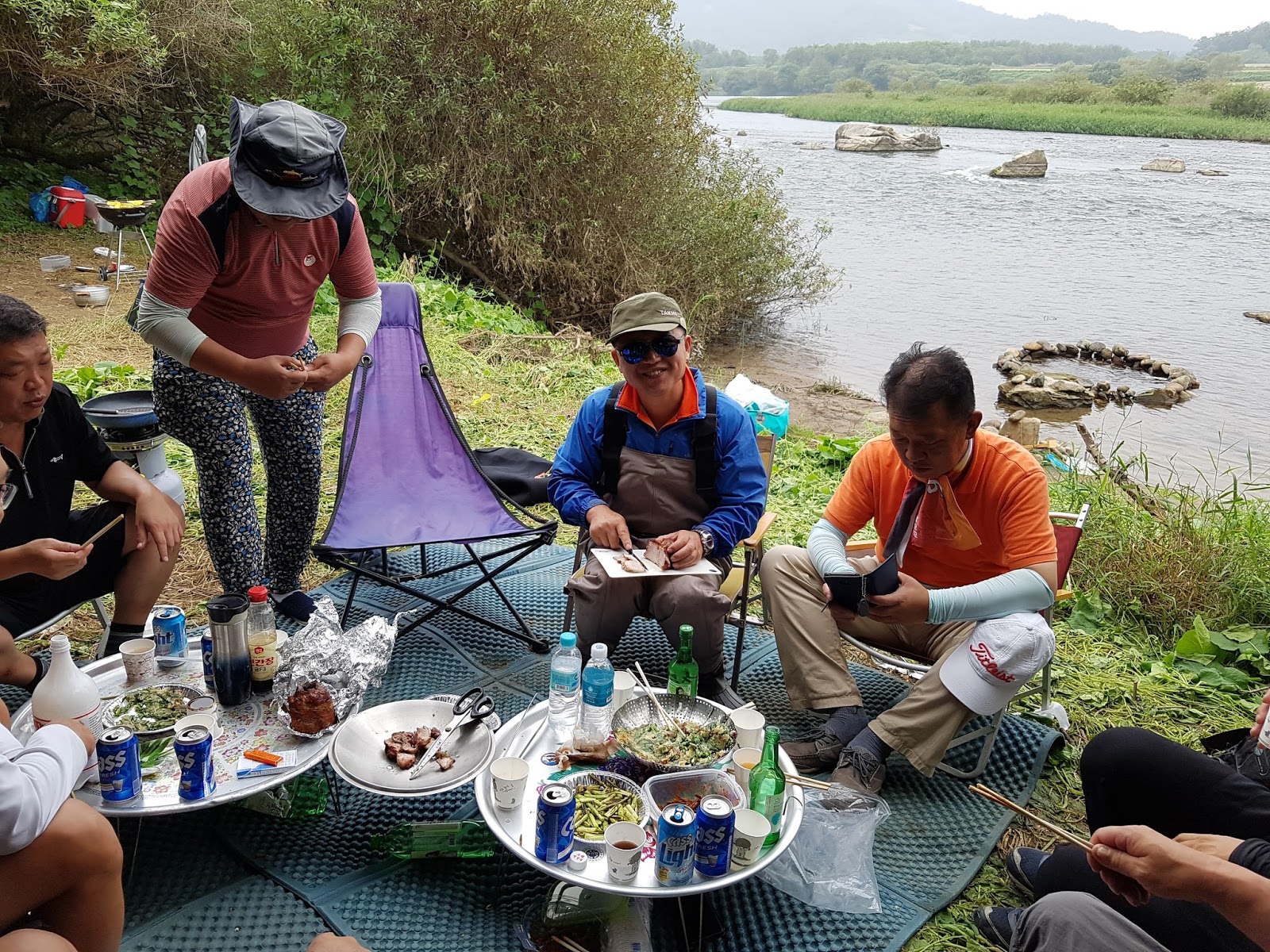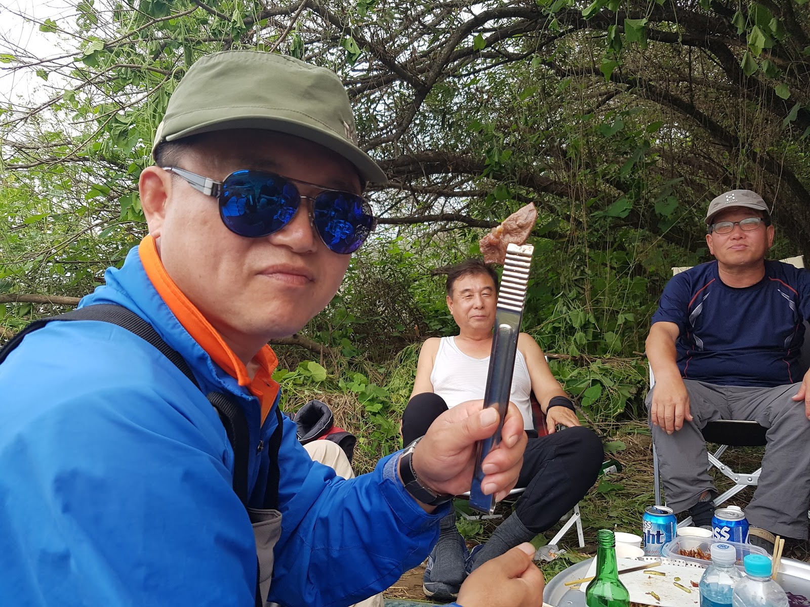 구구리 아버님과 정포수 선배님 참이슬 선배님과 함께 꽁치 라면으로 여울가에서 절정의 분위기를 잡습니다. |
