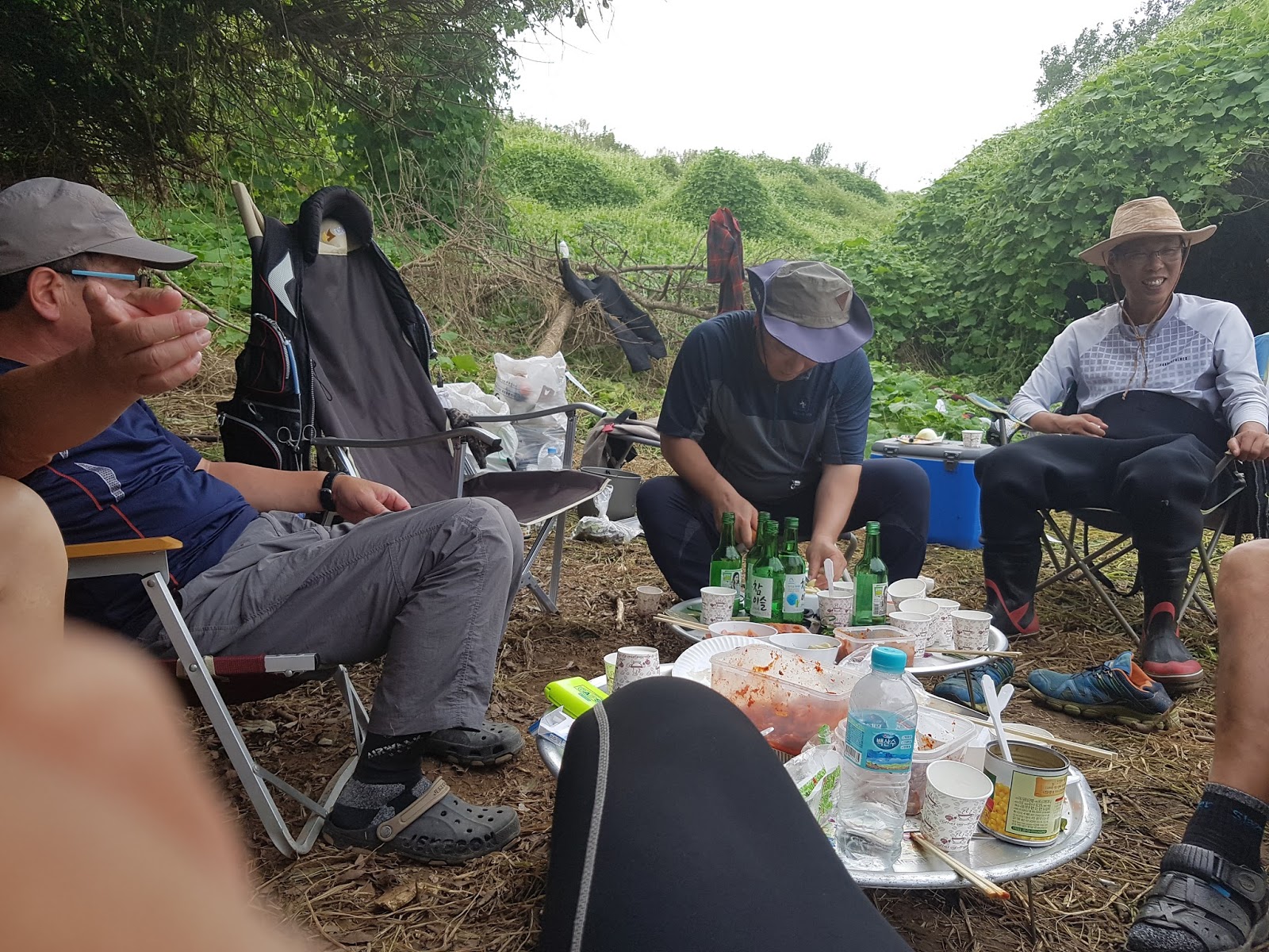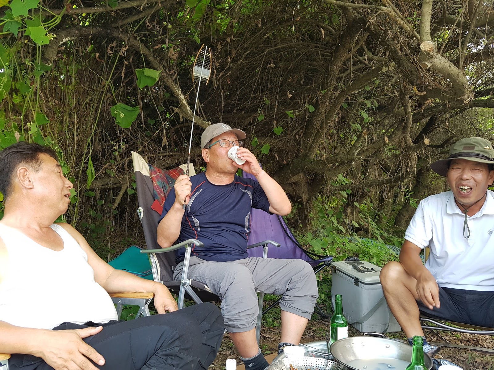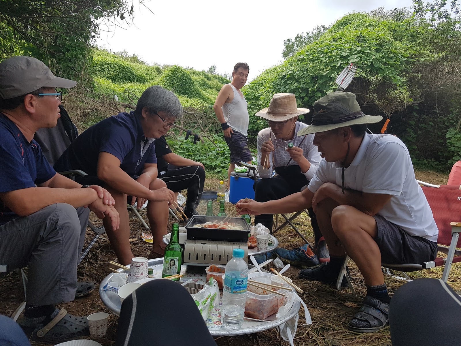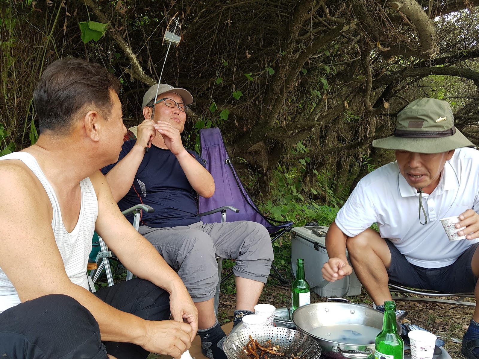 구구리 아버님과 정포수 선배님 참이슬 선배님과 함께 꽁치 라면으로 여울가에서 절정의 분위기를 잡습니다. |