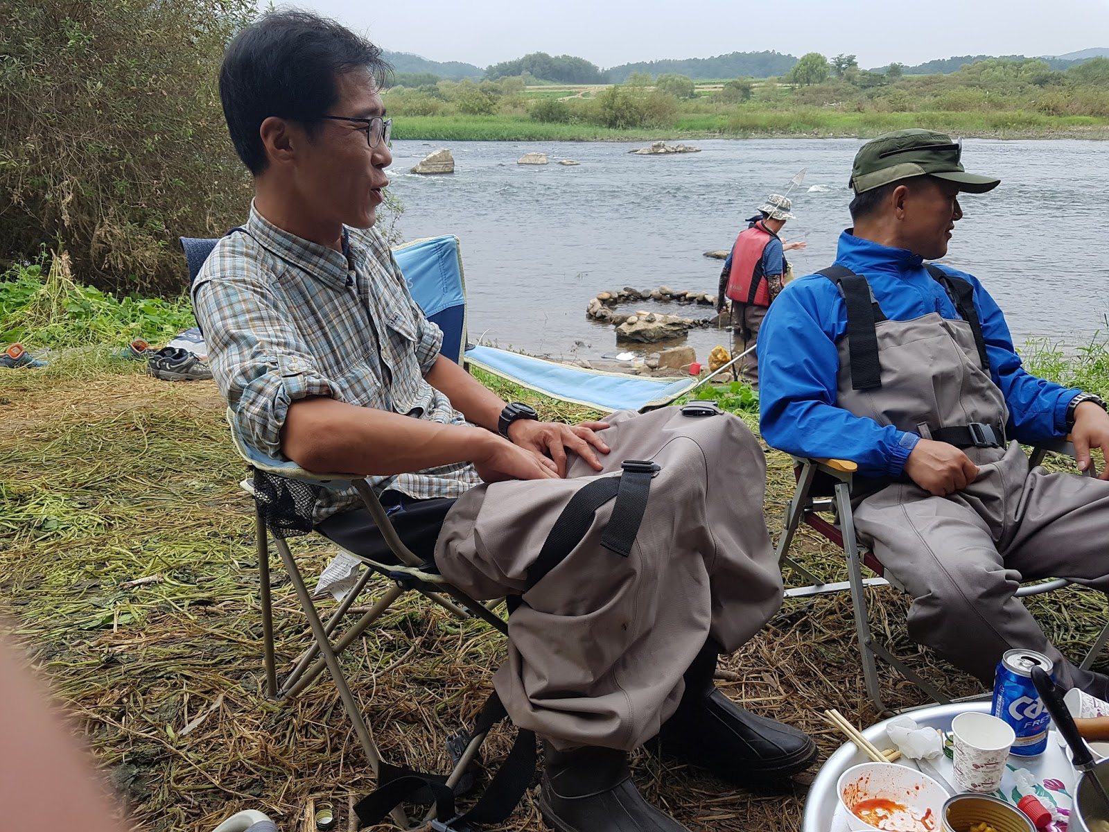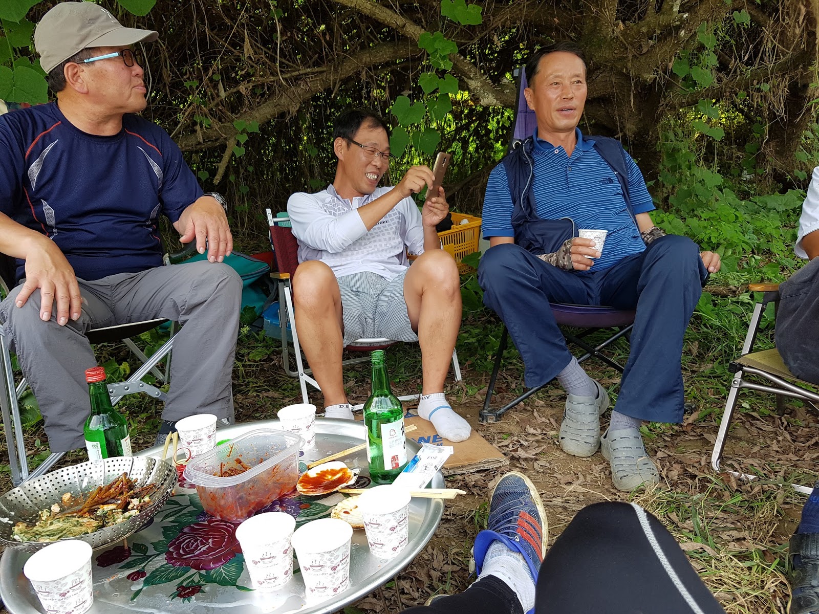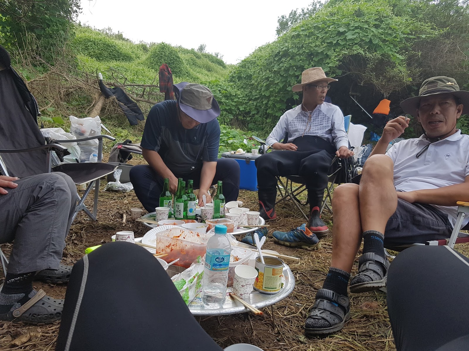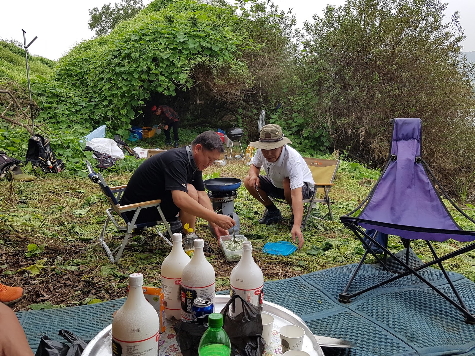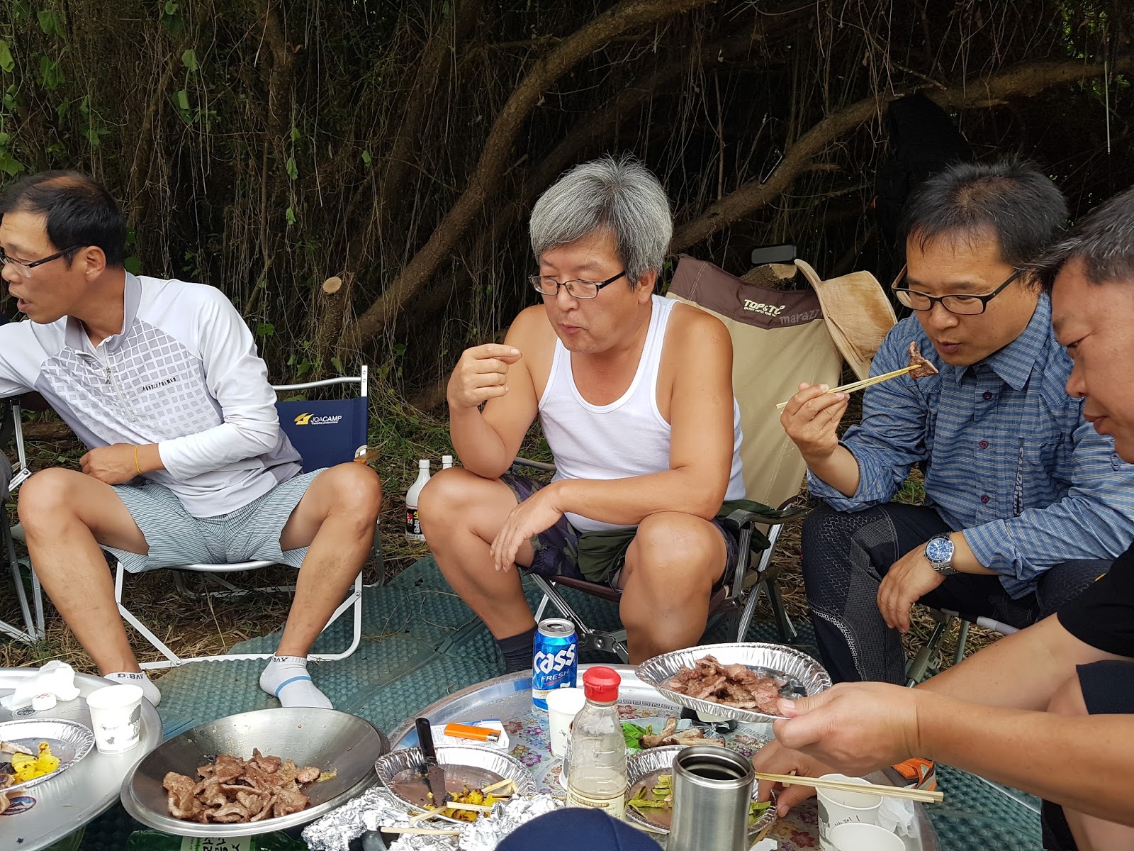 구구리 아버님과 정포수 선배님 참이슬 선배님과 함께 꽁치 라면으로 여울가에서 절정의 분위기를 잡습니다. |