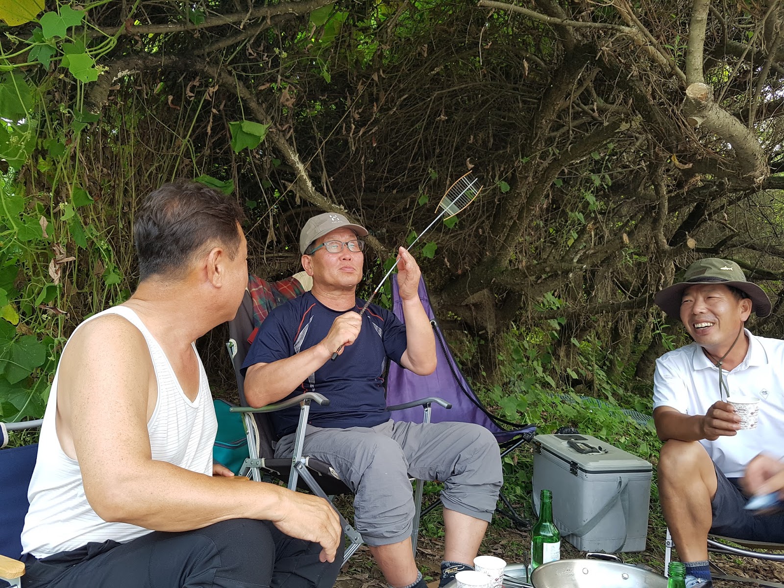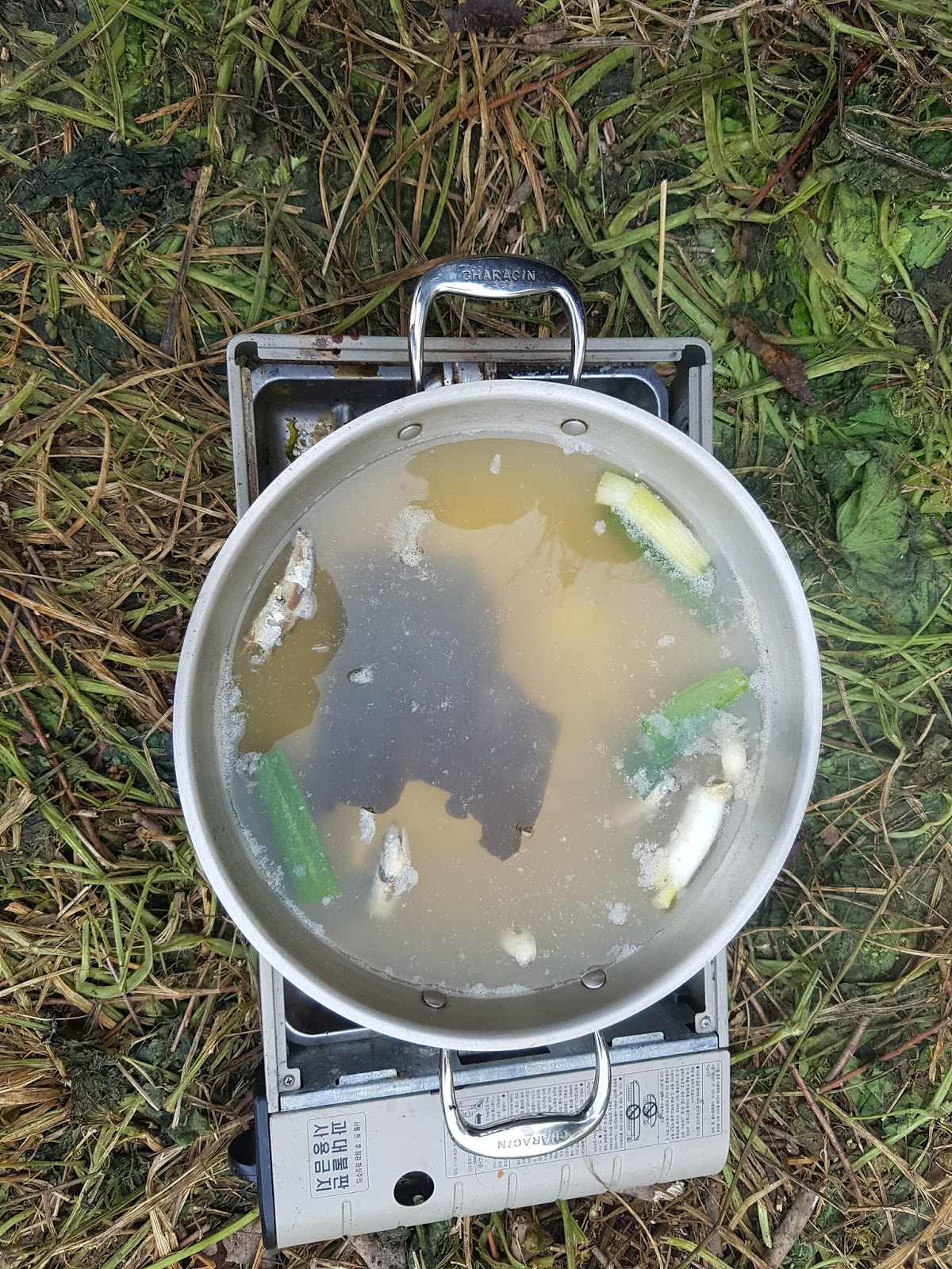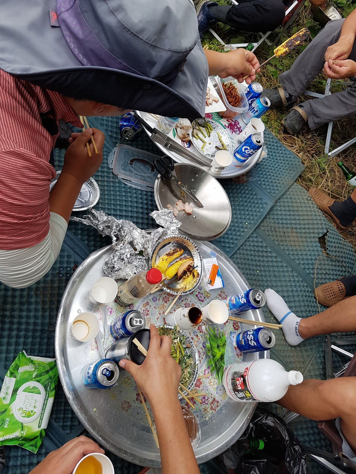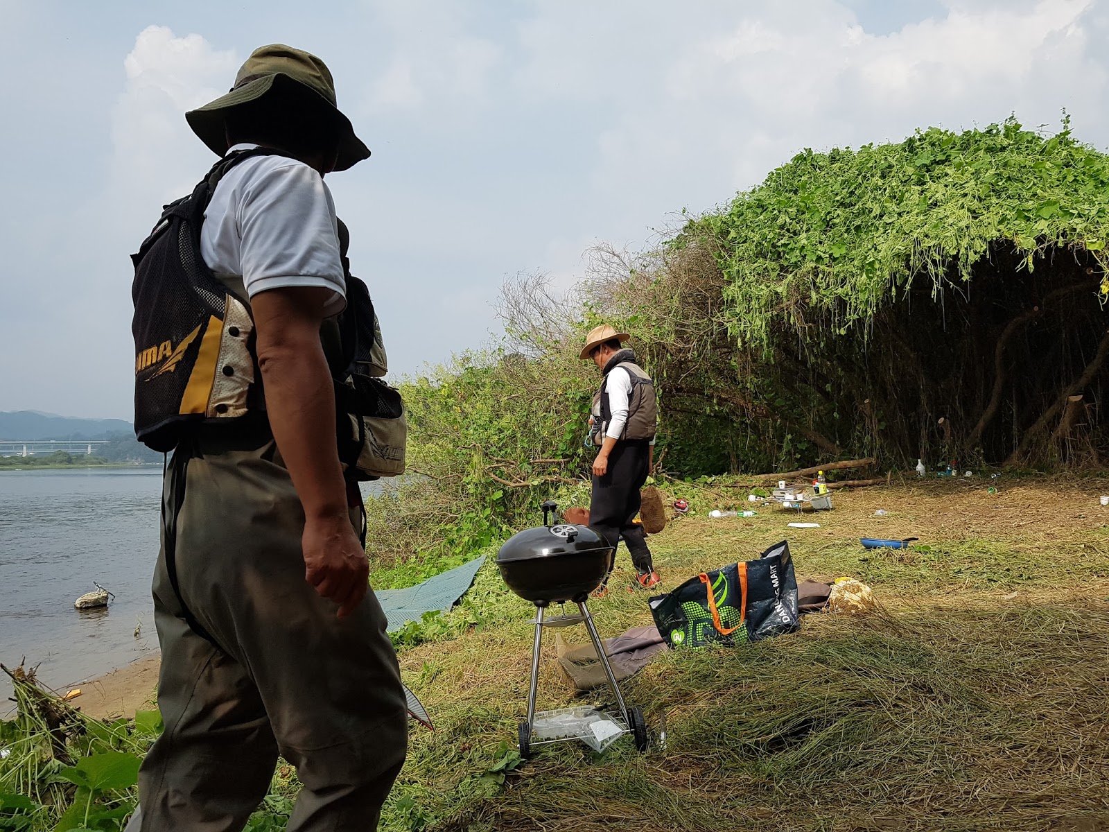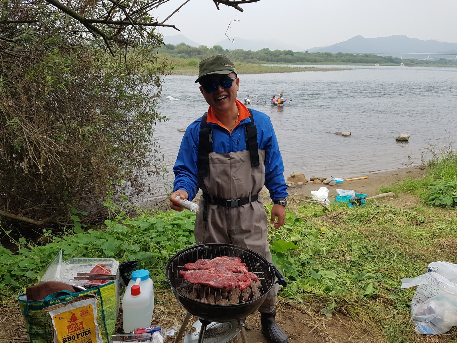 구구리 아버님과 정포수 선배님 참이슬 선배님과 함께 꽁치 라면으로 여울가에서 절정의 분위기를 잡습니다. |