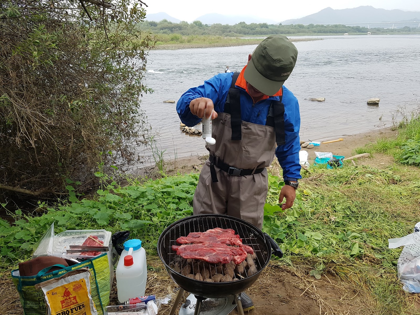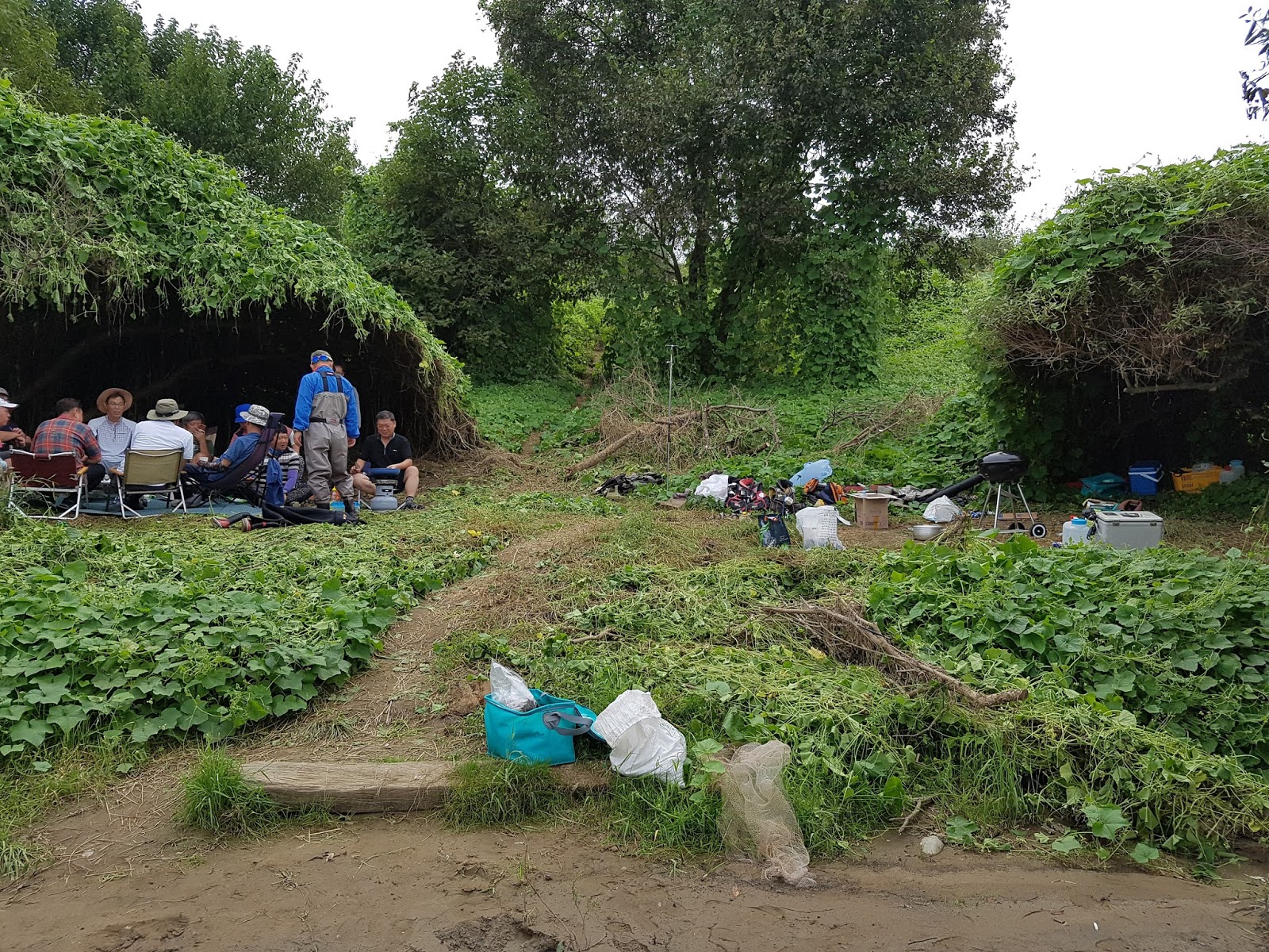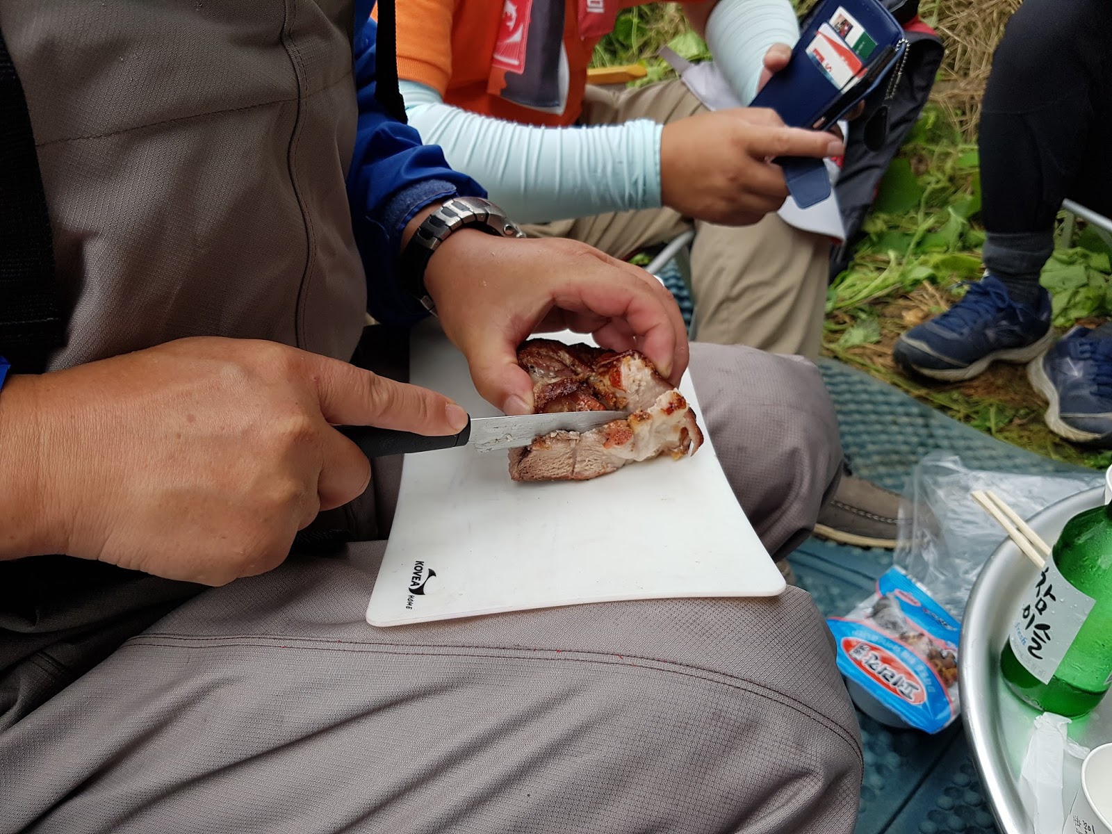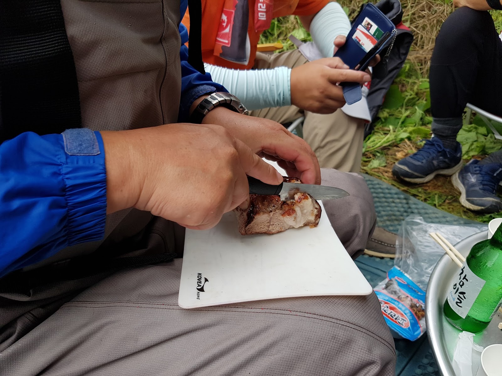 구구리 아버님과 정포수 선배님 참이슬 선배님과 함께 꽁치 라면으로 여울가에서 절정의 분위기를 잡습니다. |