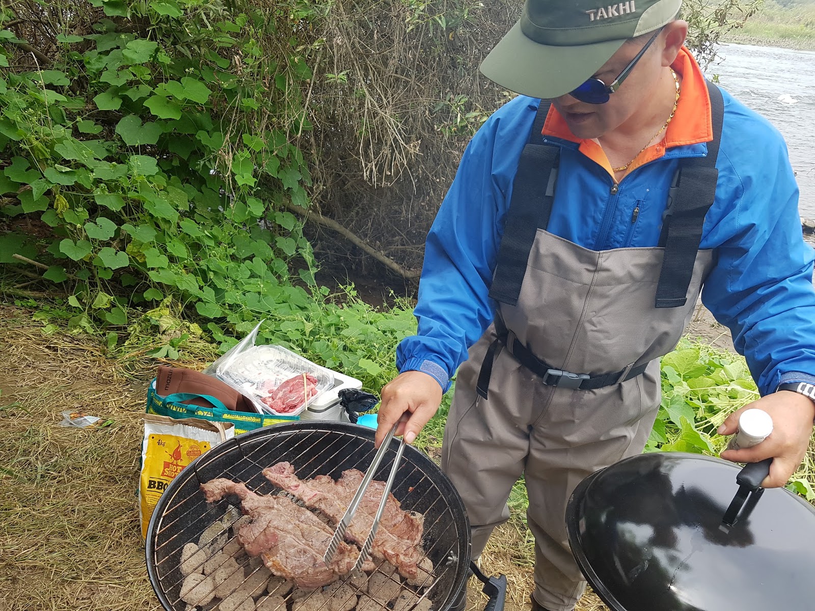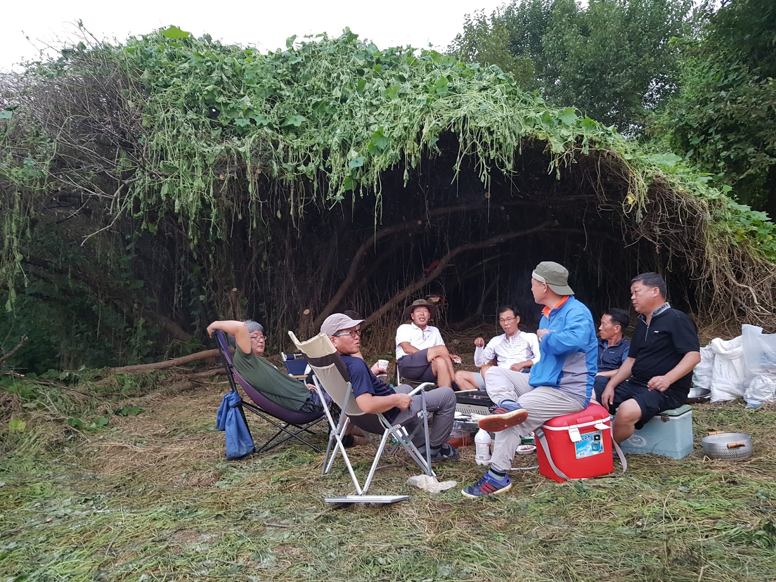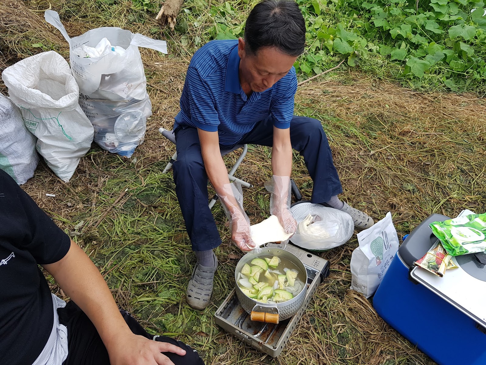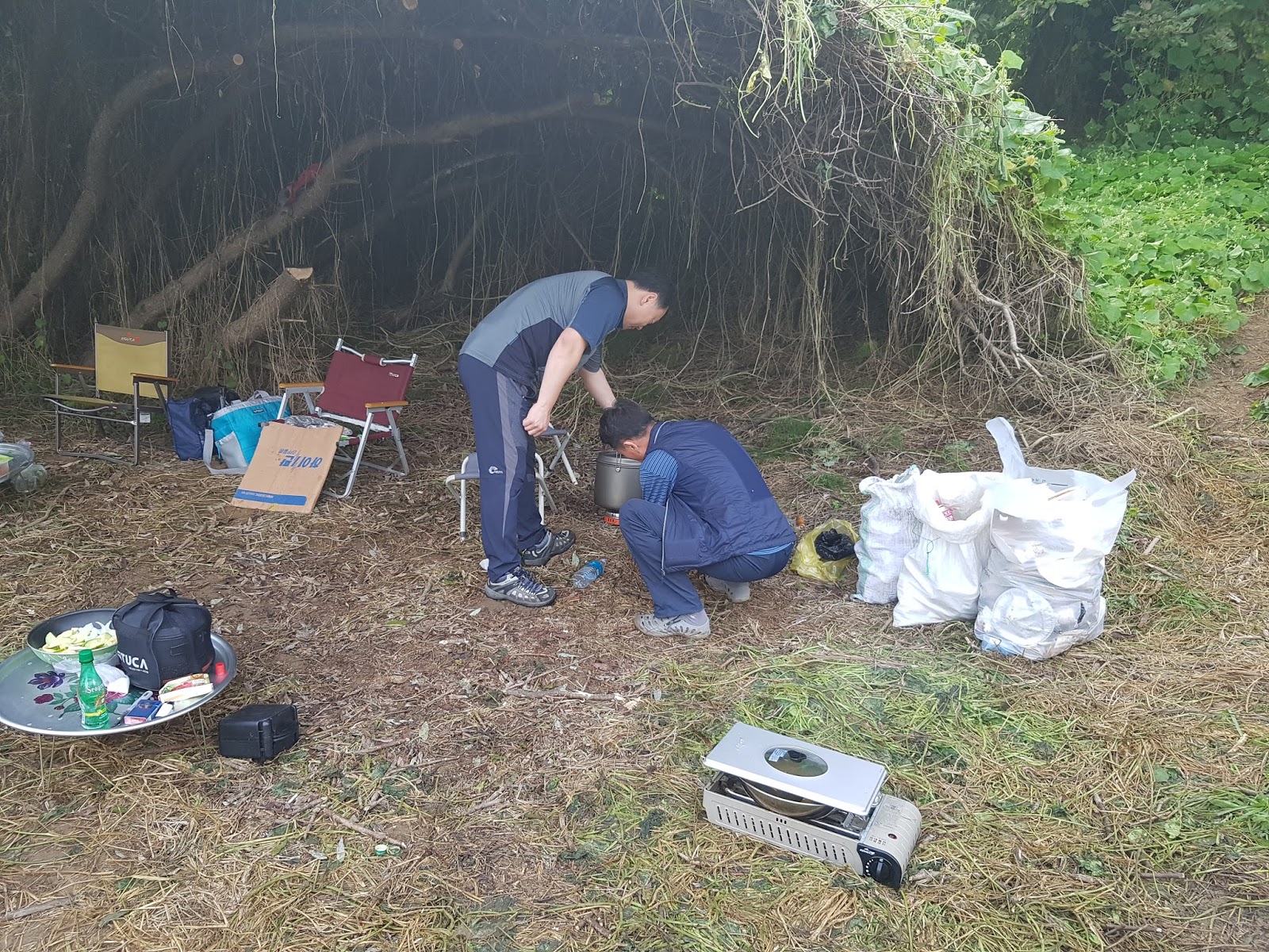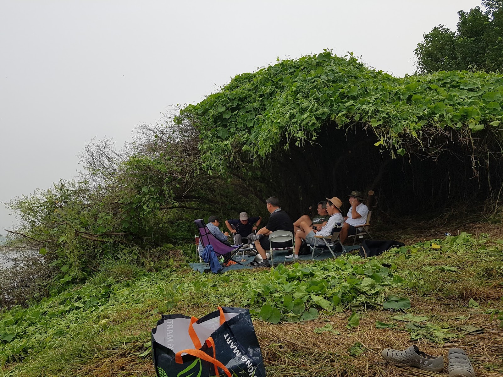 구구리 아버님과 정포수 선배님 참이슬 선배님과 함께 꽁치 라면으로 여울가에서 절정의 분위기를 잡습니다. |