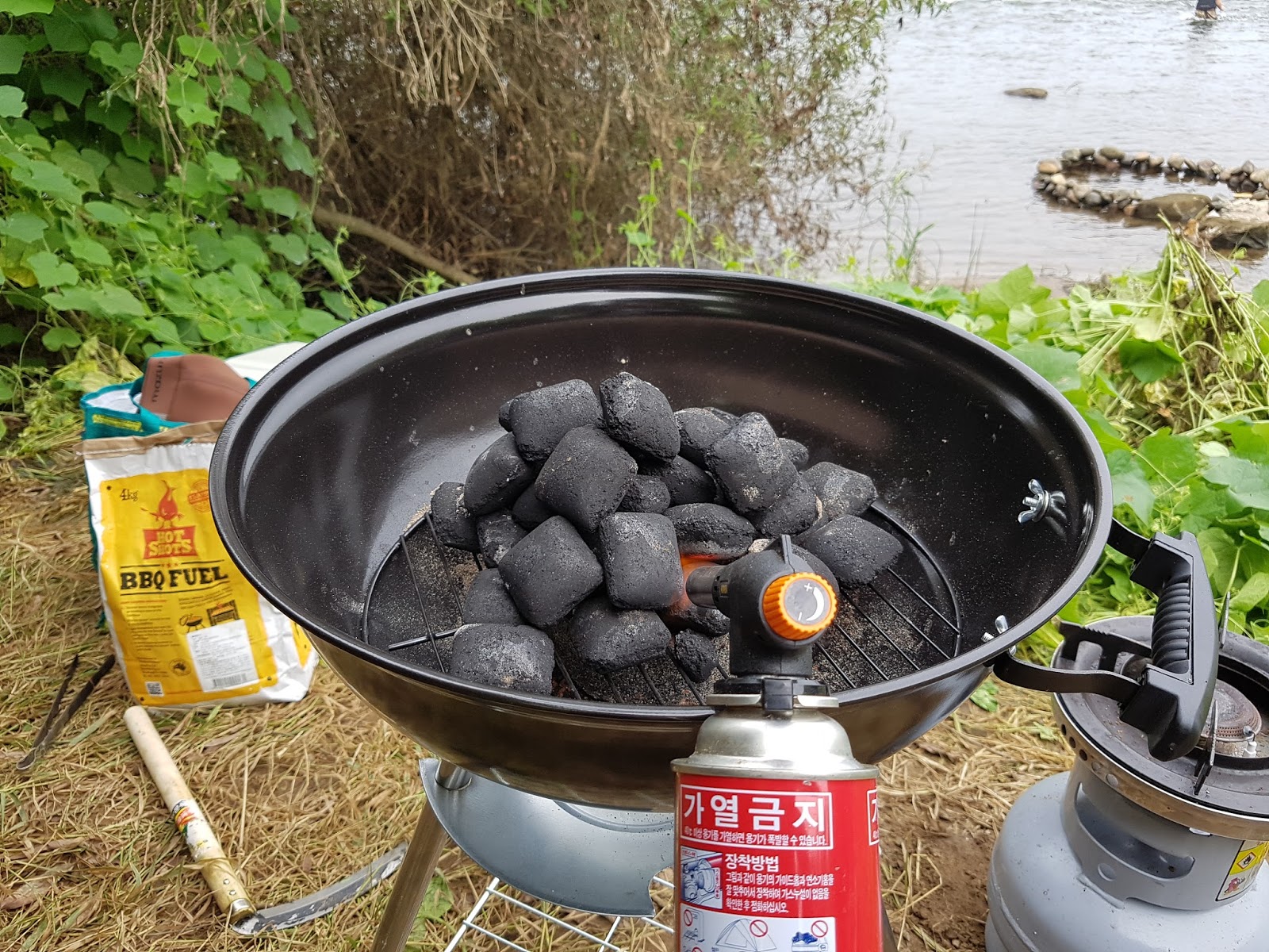 오늘의 쉡 화창선배님입니다. 그냥 대충 불피우고 참나무 좀 잘라다가 물에 불리고 숯에 기름안떨어지게 기름받이 만들고 한두시간 있으면 되는지 알았는데 ㅋㅋ 화창선배님 없었으면 망할뻔했어요 숯에 불붙이는거부터 문제더랍니다 화창선배님 잘 배웠습니다~ |