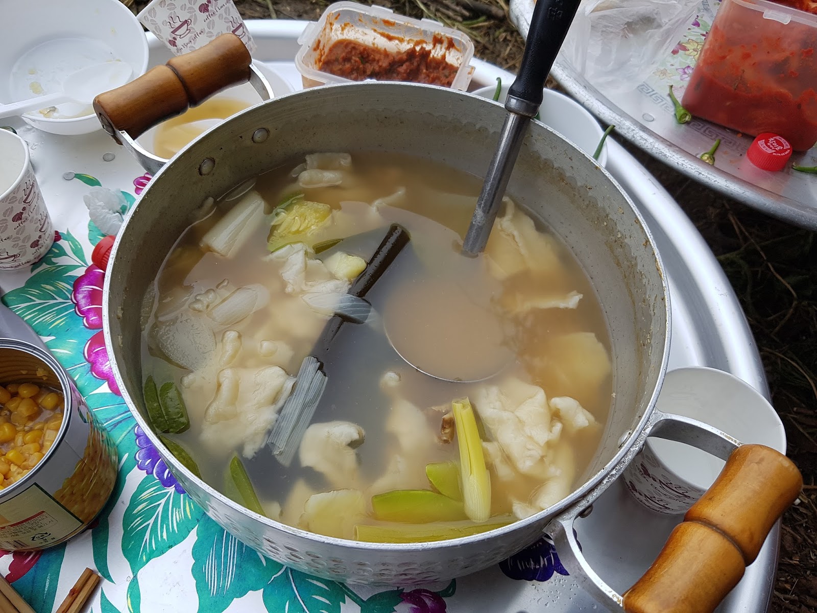 목계 이 후로 다시 먹게된 정포수 선배님표 감동의 모닝 수제비입니다. 수제비 해주실려고 댁에서 직접 반죽하셨을 생각하니 뭉클합니다. |