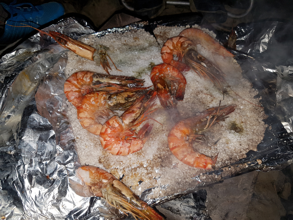 새우 소금구이로 여울에서의 마지막을 보냅니다. |