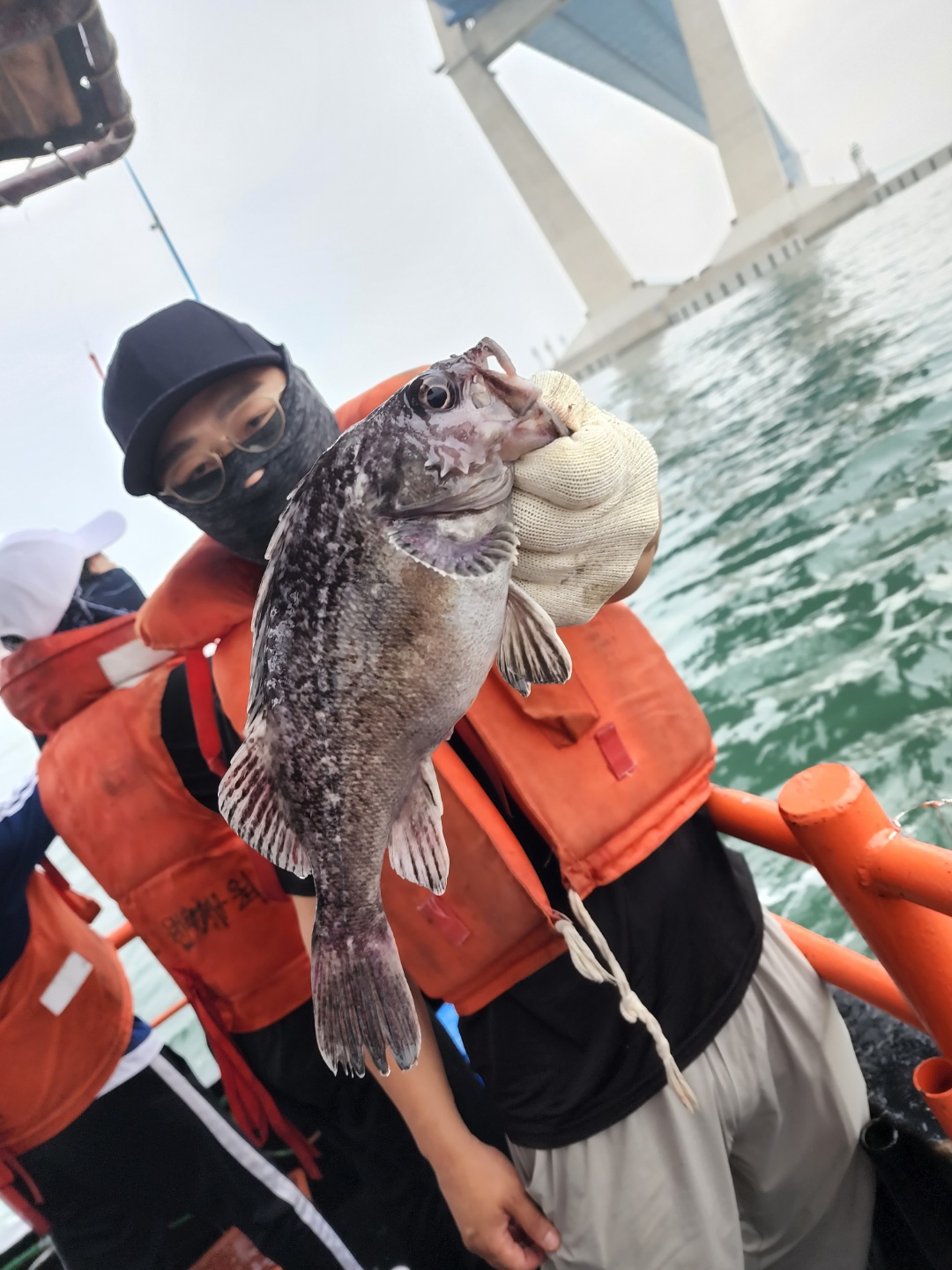 여친이 철수 전에 괜찬은 싸이즈의 우럭으로 마무리 합니다 갯지렁이 빼고 오징어로만 다니 우럭을 낚았습니다 이정도면 골라잡는 수준?ㅋㅋ