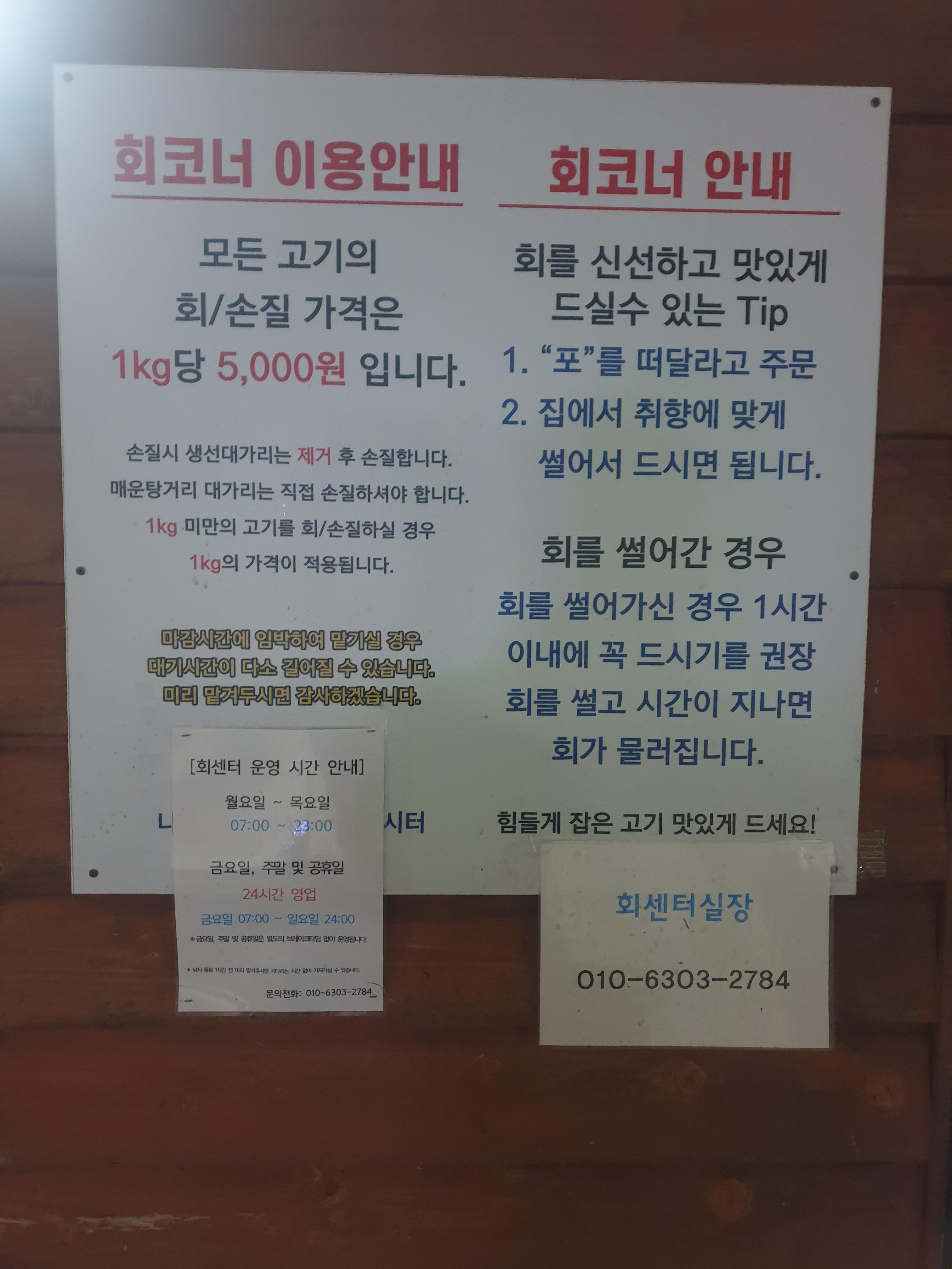 평일 회코너는 저녁11시 까지하니까 시간 맞춰 가시면 손에 비린내없이 깔끔하게 집에 가져가실 수 있습니다