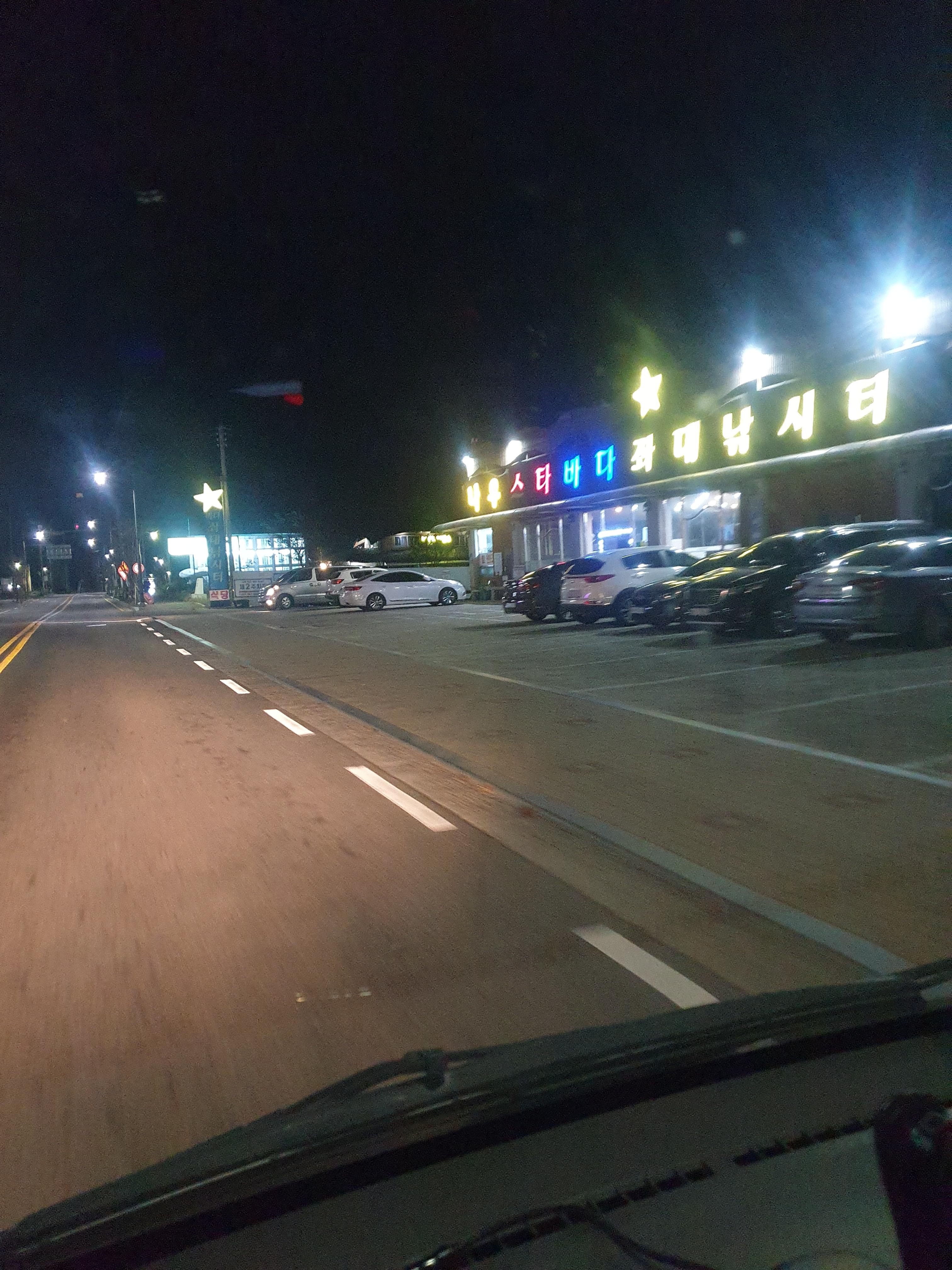 월요일 저녁이라 그래도 여유가 있어 보이는데요 주말에는 사람들이 꽉차서 고기도 궈먹고 직접 잡은 고기로 회도 떠먹고 참 아름다운곳입니다.